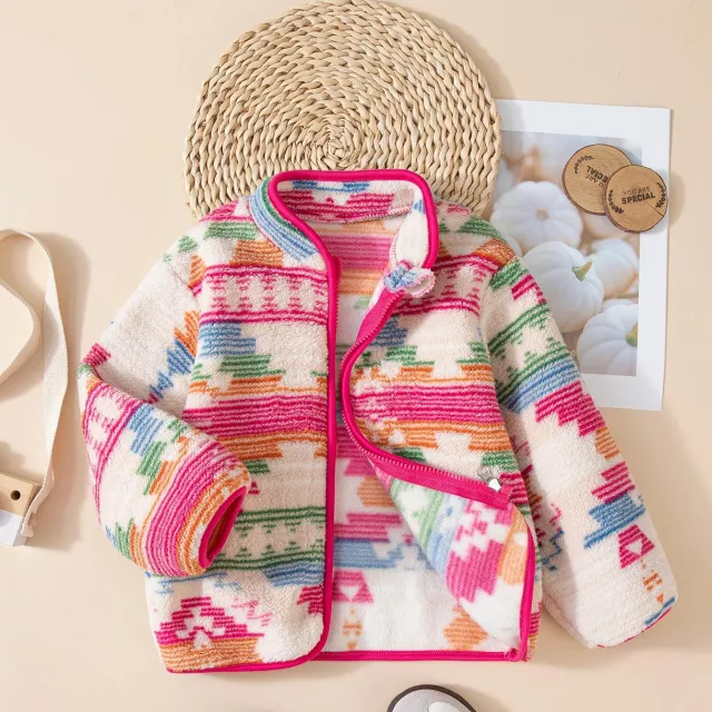 Girls’ Cozy Fleece Jacket with Colorful Lines